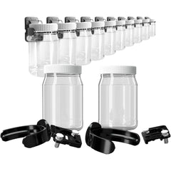 (12) Complete Set, Each Kit Contains (1) 16 Oz Plastic Jar; (1) Flex Bracket; (1) Lid; (1) Wallwerx Base: (2) Brads