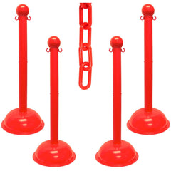 Pedestrian Barrier Kits; Chain Material: Polyethylene; Post Material: HDPE; Surface Pattern: Solid Color; Chain Color: Red; Post Color: Red; Inside Link Length: 1.42 in; Inside Link Width: 0.59