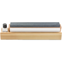 1 oz. Bottle of Honing Oil; Wooden Base; Aluminum Oxide/Soft Arkansas/Hard Arkansas Stone Piece