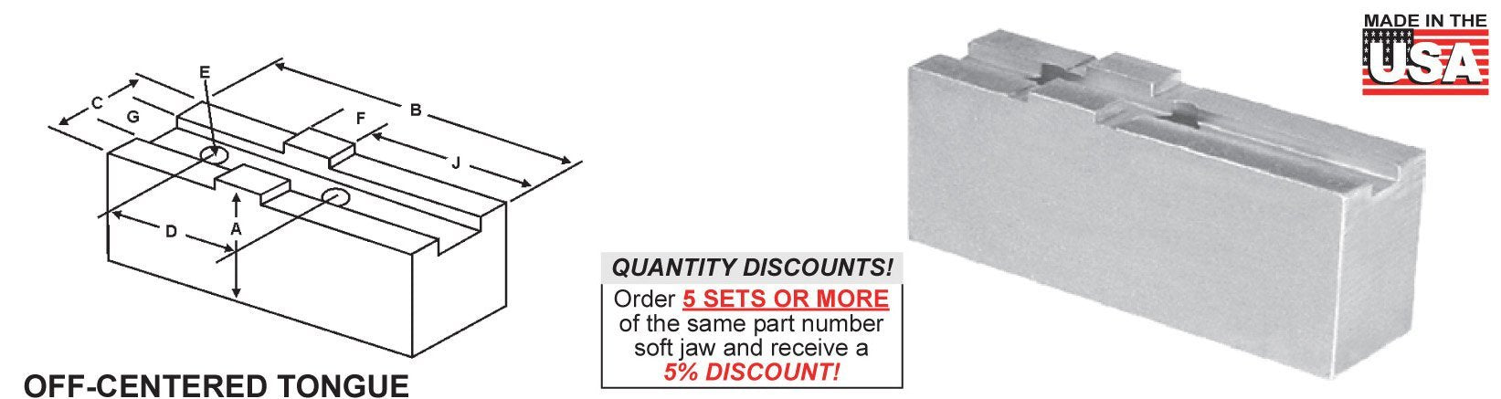 SOFT JAWS FLAT - METRIC TONGUE & GROOVE **FOR USE ON: Forkardt, Rohm & SMW Chucks