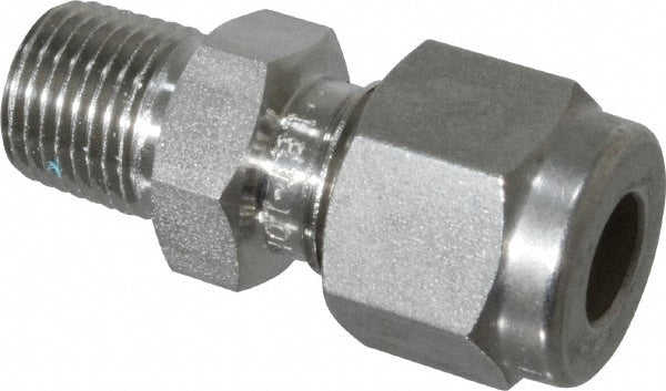 Compression Tube Connector: 1/4" Tube OD, Compression x MNPT