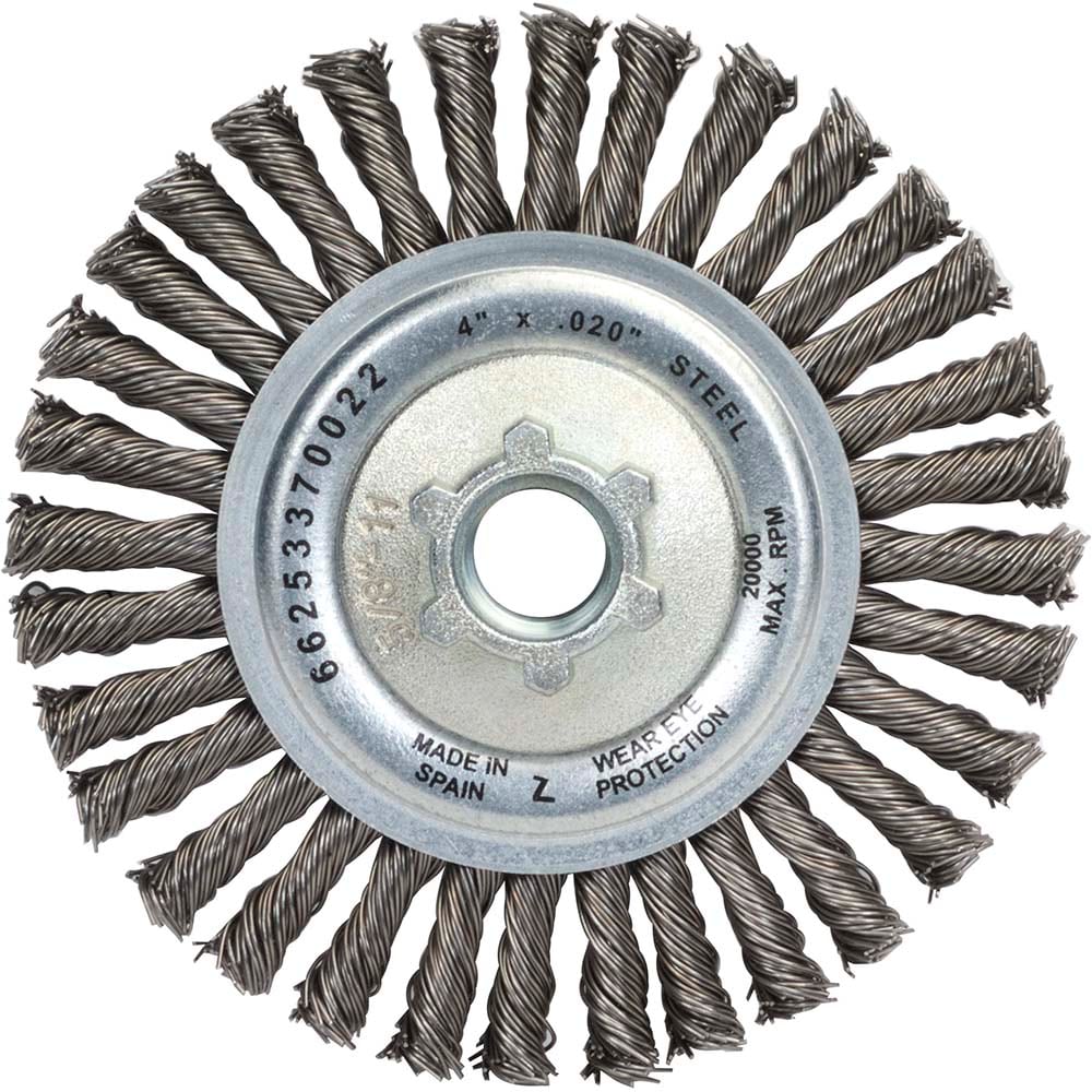 Wheel Brush: 4" Wheel Dia, 3/16" Face Width, 0.0200" Wire Dia