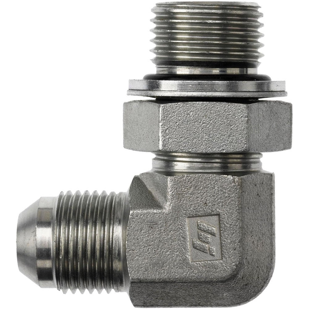 Steel Flared Tube 90 Deg Elbow: 1/2-14 x 7/8-14 Thread, 37 deg Flared Angle