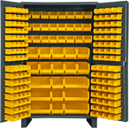 48"W - 14 Gauge - Lockable Cabinet - With 171 Yellow Hook-on Bins - Flush Door Style - Gray
